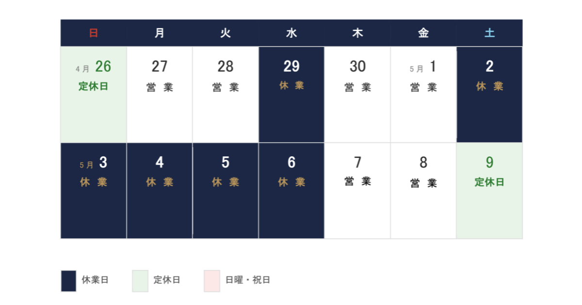 2026年5月7日(木)より通常業務を再開いたします。 休業期間中のお問い合わせは、5月7日以降に順次ご対応いたします。